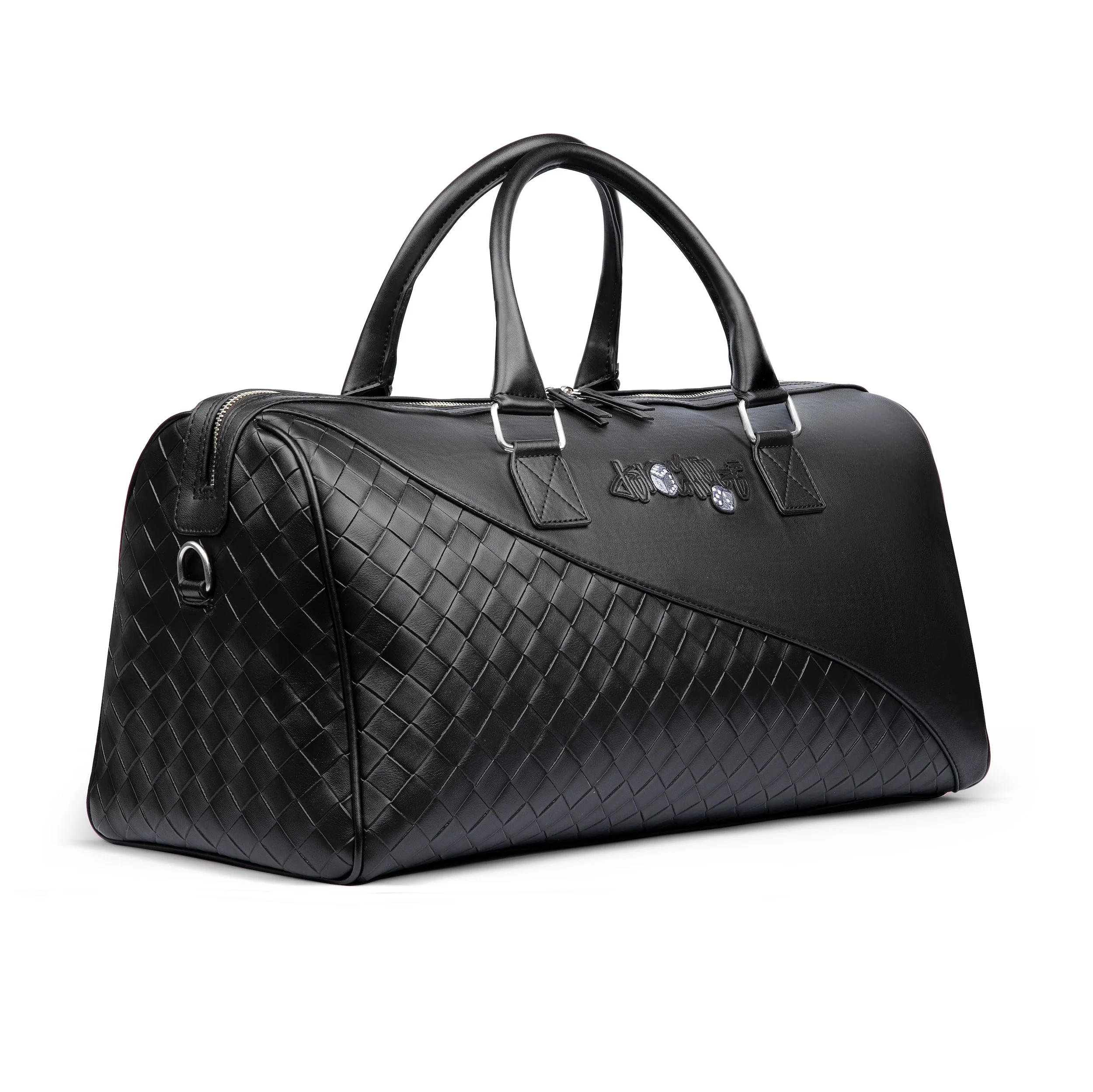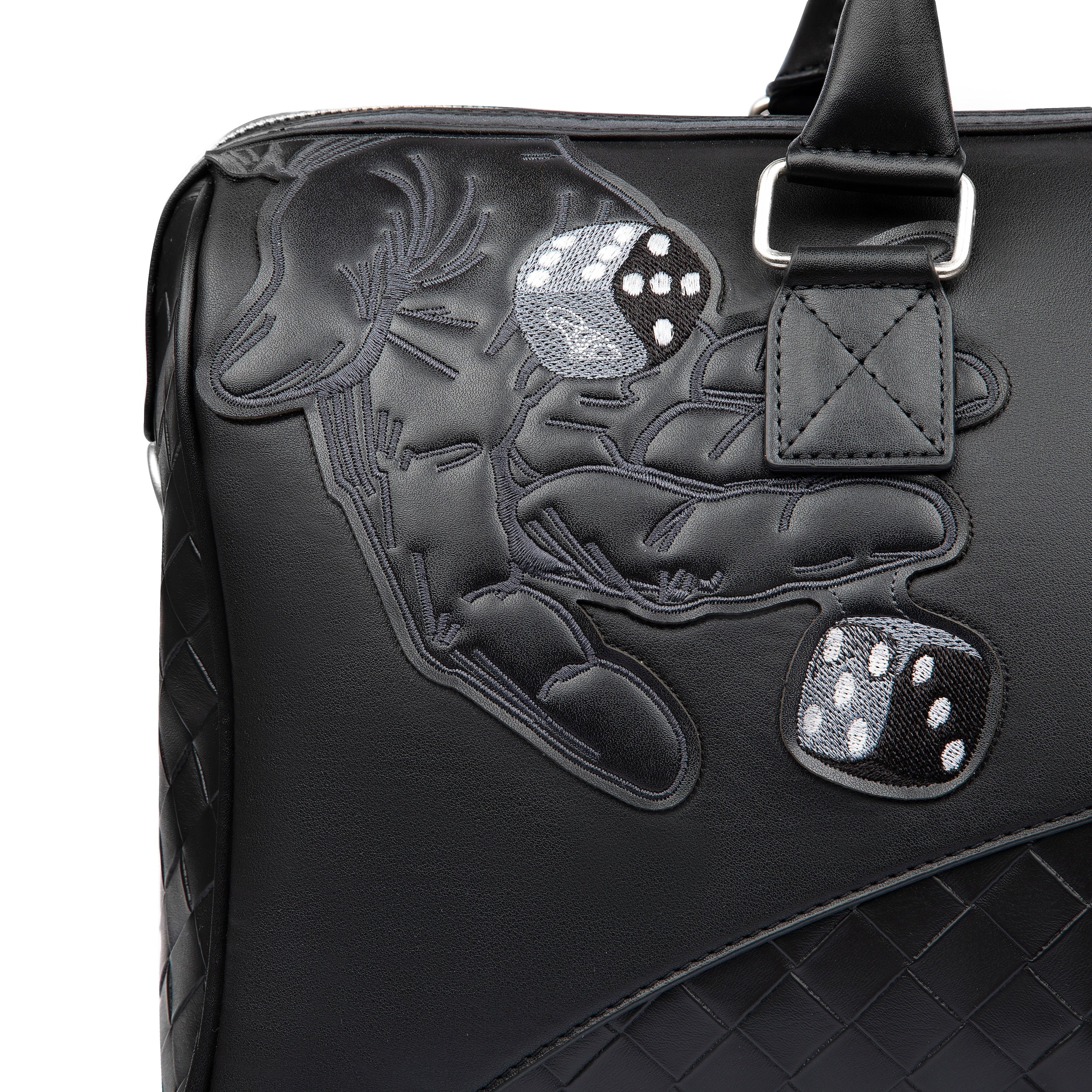 vegan leather/ 3d woven look/ shoulder strap/ embroidery patches/ due to the nature of the tight packaging, the vegan leather bag may exhibit slight creases or wrinkles upon arrival