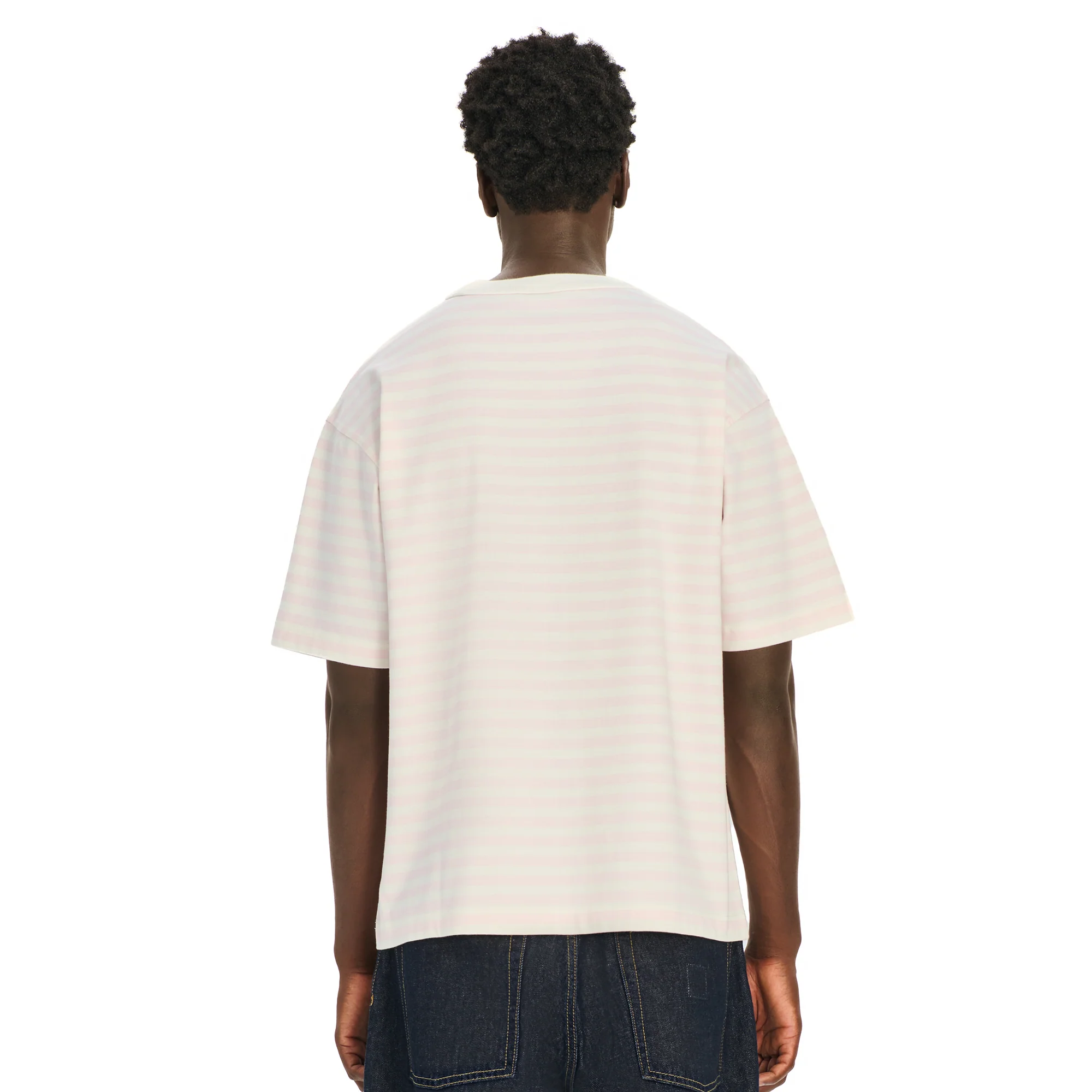 280gsm fabric / 100% preshrunk cotton / pink striped printed fabric / embroidery on front / fits true to size